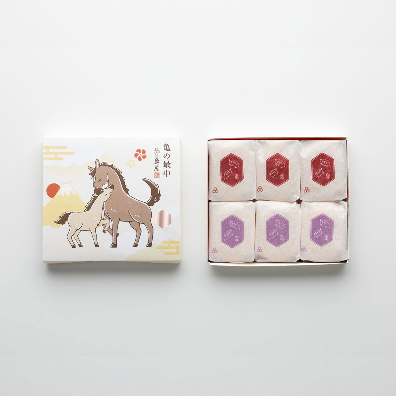 小豆を丹念に炊き上げた程良い甘さの餡と国産のもち米の最中種で合わせた亀甲羅の愛らしく、品の良い一口サイズの最中です。